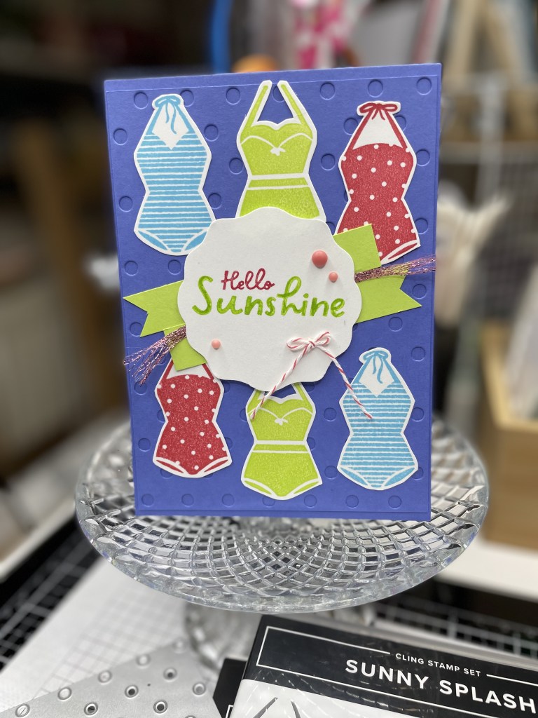 Hier habe ich zuerst die Badeanzüge auf Orchideelila gestempelt und dann gestanzt.