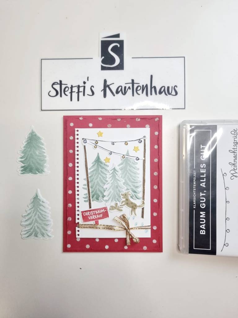 Steffi hat noch den Rand mit einer Stanze aus dem Stanzset „Blühendes Glück“ im JK 2022 ausgestanzt. Ihre Karte hat ein anderes Maß als die meine. Ich werde ihre Maßangaben noch nachtragen.