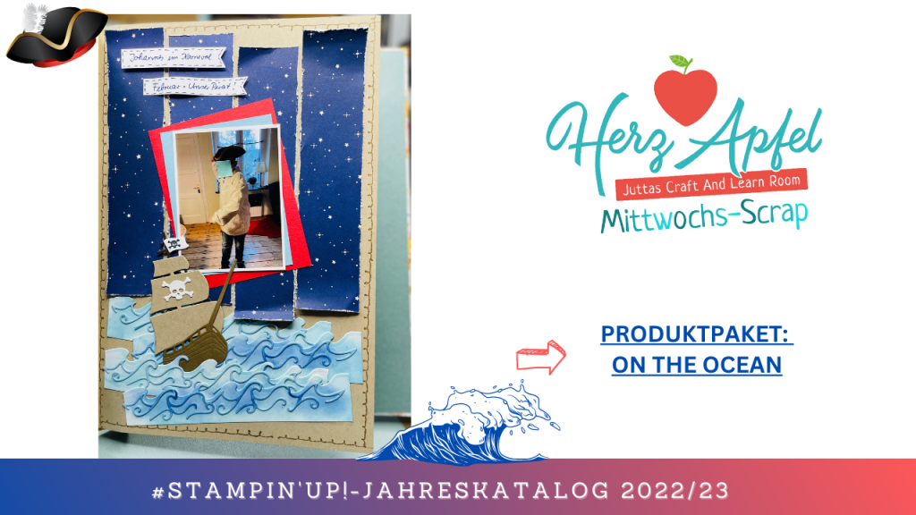 🍎das Thema des Mittwochs-Scrap ist eine weitere Seite im Jahresalbum. Ich habe mir ein Layout für den Februar ausgesucht. Unser Jüngster war zu Karneval ein stolzer Pirat und das war ein Highlight, was ich gerne festhalten möchte.