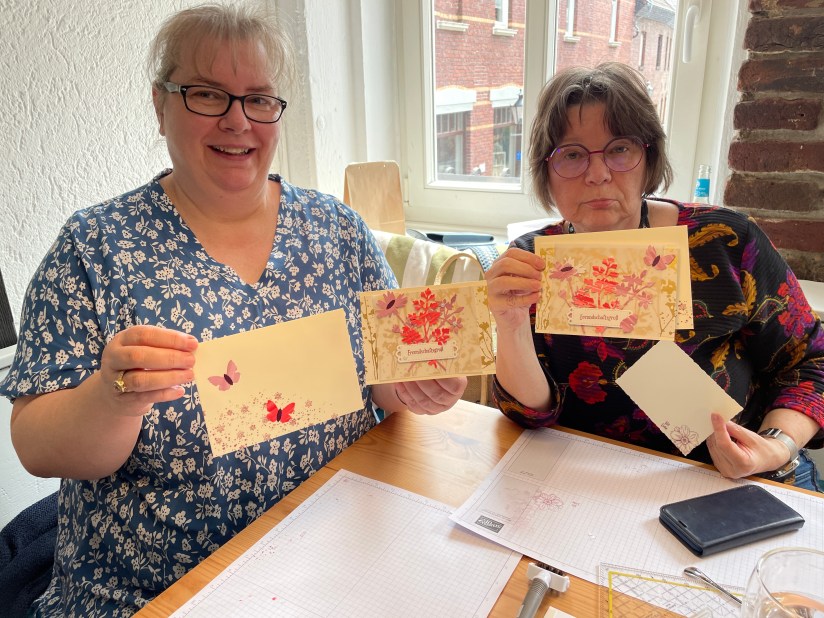 Bei solch einem Team Treffen wird gemeinsam ein Projekt gebastelt – Karte, Verpackung, … Wir tauschen uns in netter Ambiente aus und haben viel Spaß dabei.
