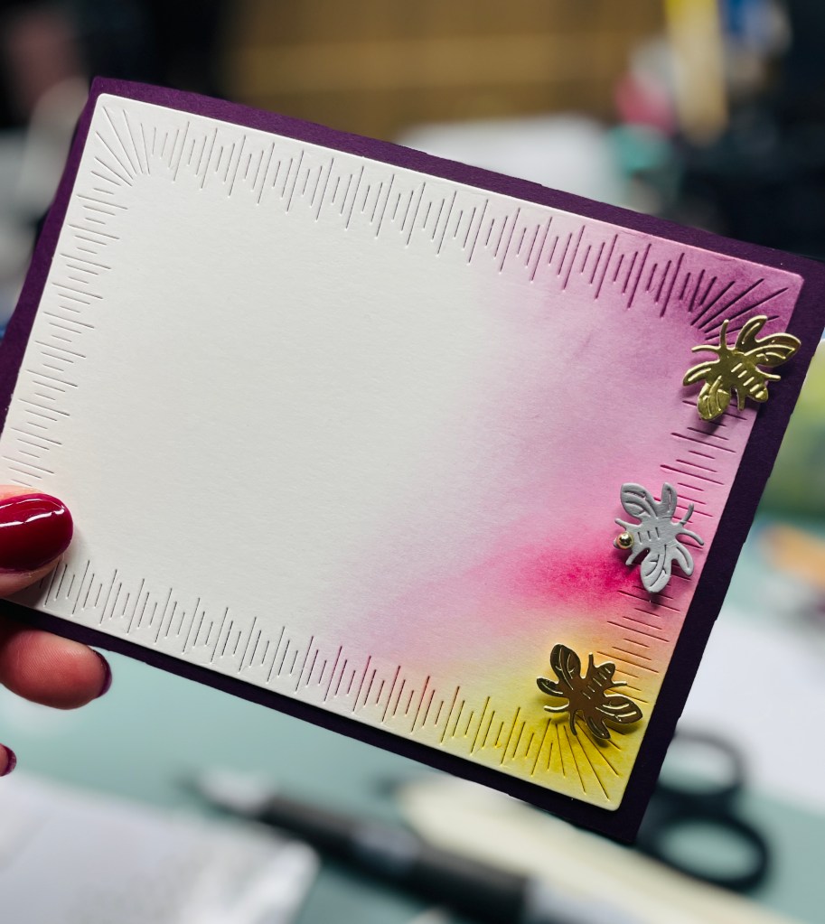 Wir haben das Aquarellpapier mit unseren Farbwünschen aquarelliert.