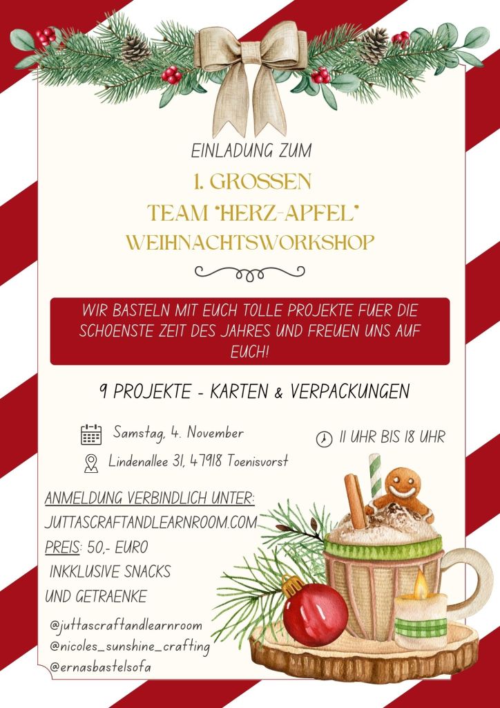 🍎am 4. November 2023 um 11 Uhr laden wir euch herzlichst zu unserem 1. Team HERZ-APFEL Weihnachtsworkshop ein.