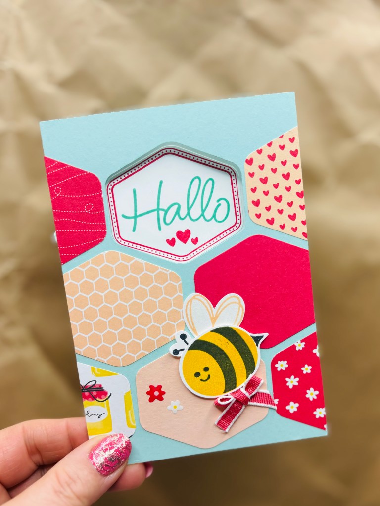 1 x FK in Grundweiß 7cm x 7cm für das Hexagon mit Hallo Stempelabdruck