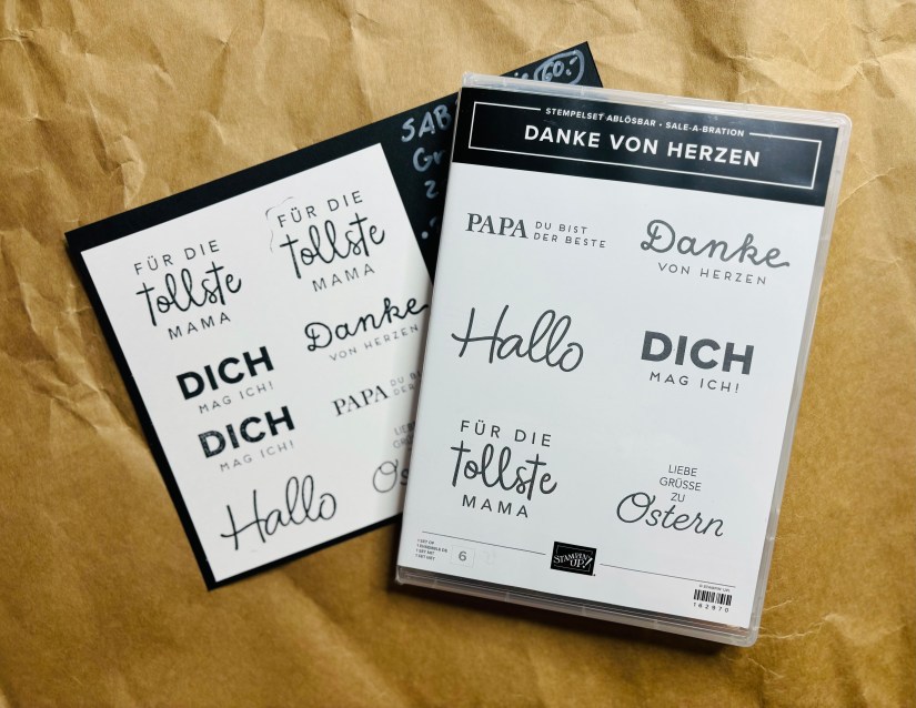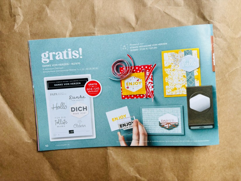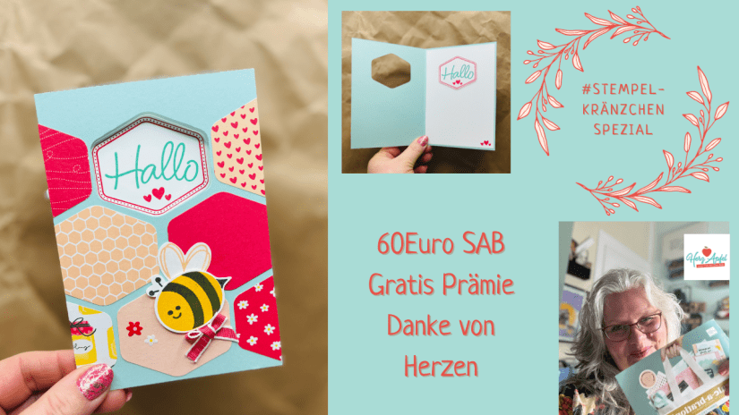 🍎Ich liebe diese Kombinationen und Ergänzungen von Produktpaketen. Das habt ihr mit dieser tollen SAB GRATIS Prämie Danke von Herzen, was ein reines Sprüche Stempelset ist. Passend dazu gibt es die Hexagone von Herzen aus dem neuen Minikatalog 2024.