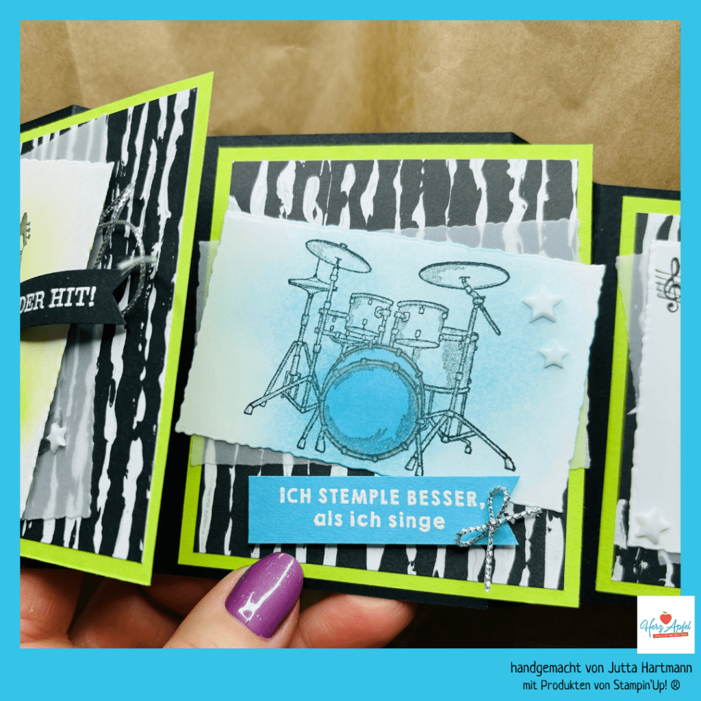 🍎 heute haben wir im Stempelkränzchen auf meinem YouTube Kanal die Musik im Vordergrund: wir basteln eine Akkordeonkarte mit dem Stempelset Du Rockst aus dem Jahreskatalog S.92 und mit der neuen Produktreihenkollektion Rock-Mix ( Neuer Minikatalog 2024, S.54/55 ). Inspiriert hat mich Tami White, Stamp with Tami.