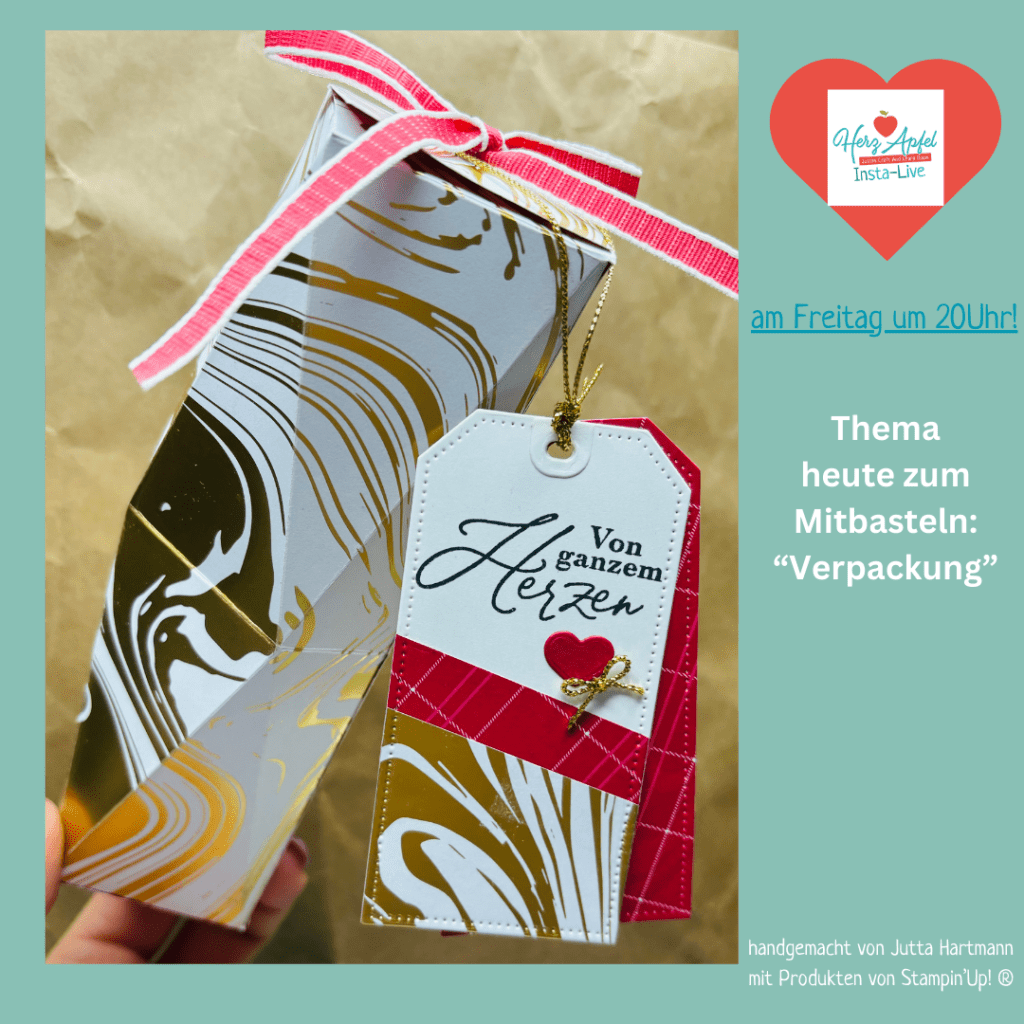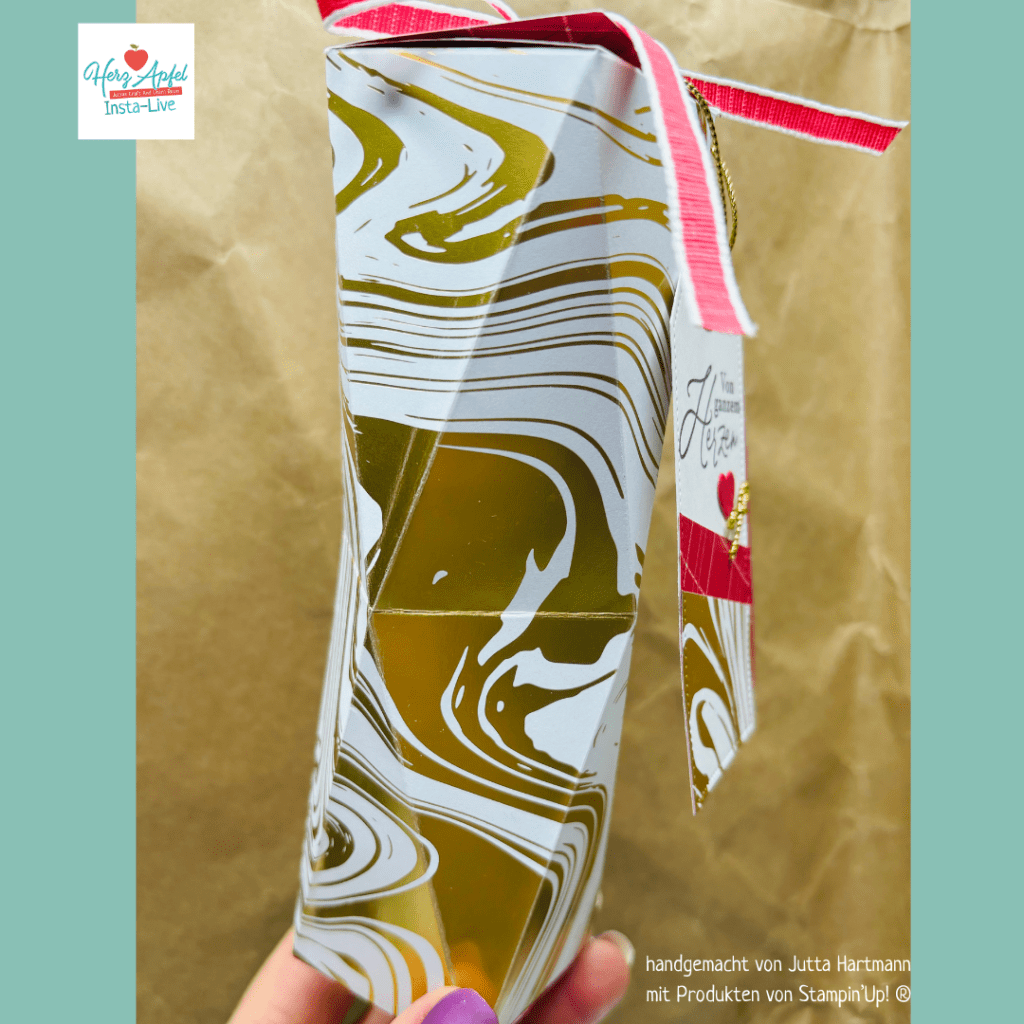 heute habe ich auf Instagram diese schöne Geschenkverpackung nach der Idee von Sam Pootles mit euch gemeinsam gebastelt. Eine wunderschöne Idee mit dem edlen Designer Papier „Goldige Muster“.