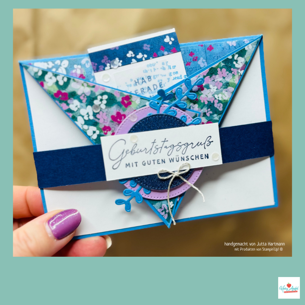 🍎 Das Designerpapier ist eine Wucht und so wunderschön❣️Ich bin wieder einmal schockverliebt. Ausgesucht habe ich mir eine Tütenkarte oder auch Pfeilkarte genannt und extra für euch in Zentimeter!