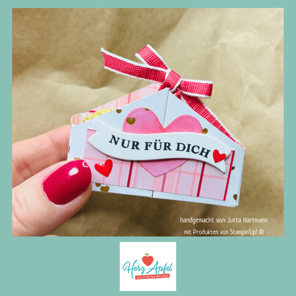 Hier siehst du die süße Verpackung von der Seite. Das Herz habe ich mit einem Blending Pinsel farbig gestrichen.