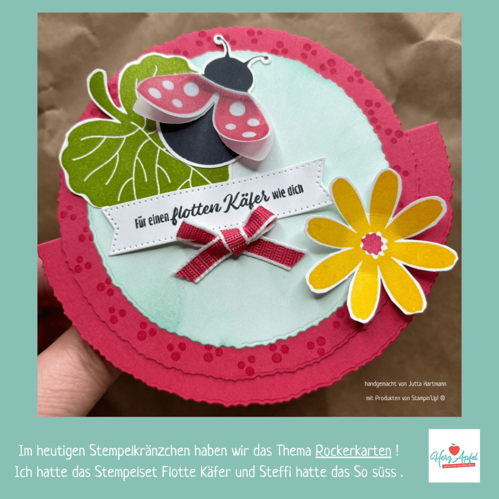 🍎heute war wieder Stempelkränzchen Auszeit mit der lieben Steffi! Dieses mal waren auf ihrem Kanal Live und haben mit den Produkten “ Flotter Käfer “ und “ ssso süss “ eine Rockerkarte gebastelt.