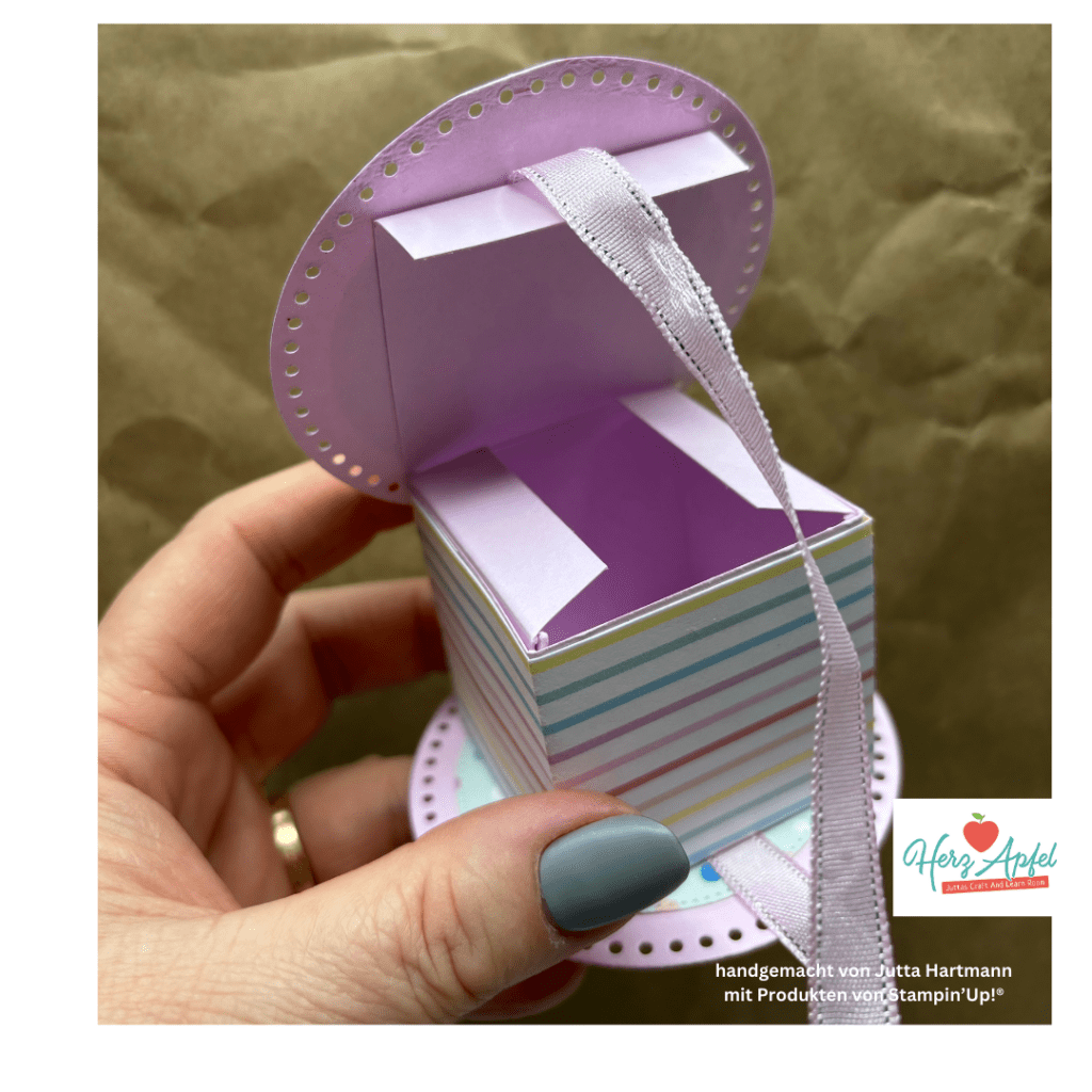 Und so sieht das Ganze dann von Innen aus, wenn man die Verpackung öffnet. Die Idee stammt übrigens von Stampin with amore.