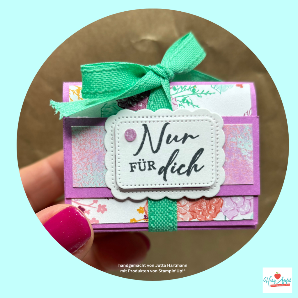 Als Thema haben wir „Kleine Verpackungen“ und dazu habe ich diese süße Verpackung kreiert, die eigentlich etwas ganz anderes werden sollte!