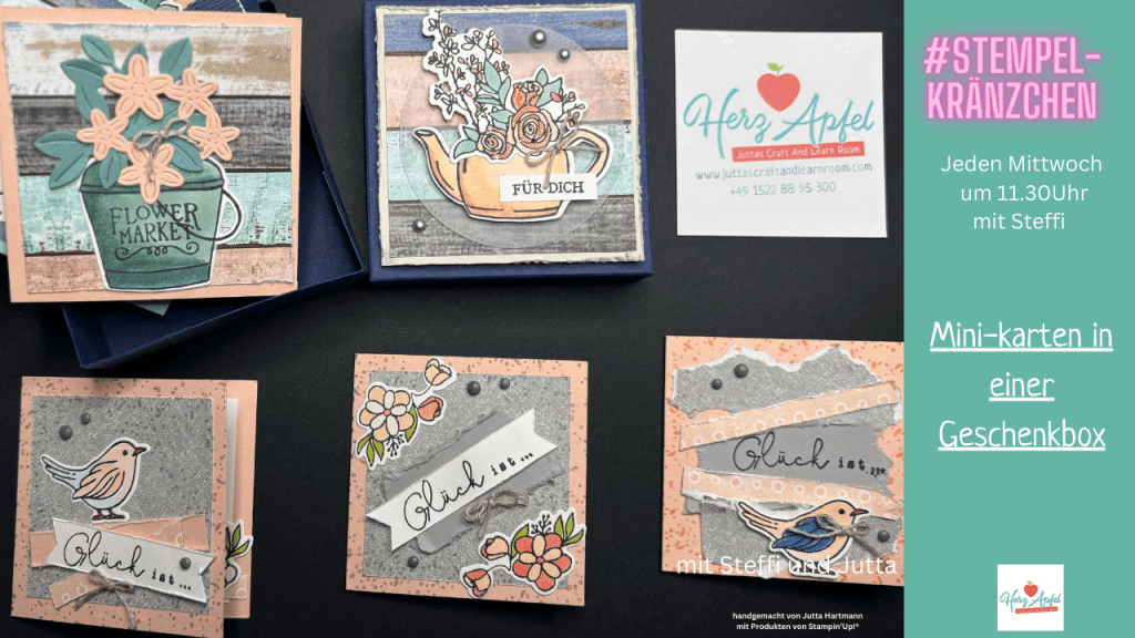 🍎 im heutige Stempelkränzchen bei der lieben Steffi haben wir kleine Minikarten und eine passende Geschenkbox dazu kreiert. Das Live hat dieses Mal auf Steffis Kanal stattgefunden. Wir wechseln uns jede Woche Mittwoch um 11.30Uhr ab.