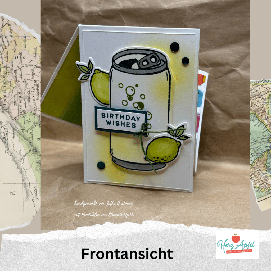 So sieht meine Karte von vorne aus. Benutzt habe ich das Stempelset Simply Sparkling und das DSP Das Beste im Leben.