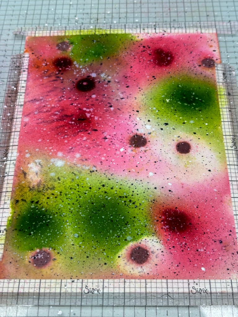 Zum Schluss habe ich noch mit meinem Stampin’Write Marker und weißer Tinte auf das Papier gespritzt.