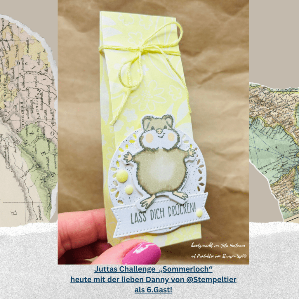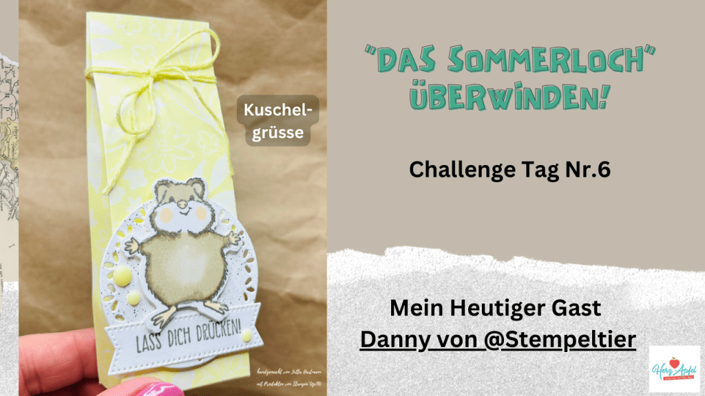 🍎 hier kommt mein Beitrag vom 6.Tag meiner Challenge „Sommerloch“. Mein Gast war die liebe Danny von Stempeltier. Sie hat eine ganz niedliche Geschenkverpackung mit gebracht, die wir gemeinsam im Live auf meinem YouTube Kanal / Instagram gebastelt haben.