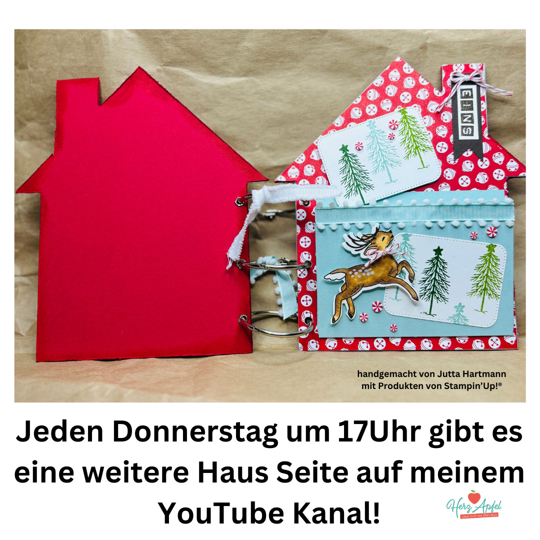 🍎 in meinem YouTube Live Video am Dienstag ( “ Juttas Late Night Stamping“ ) in der letzten Woche habe ich dieses Häuser Album gebastelt. Dabei ist der Gedanke aufgekommen einen Adventskalender mit den einzelnen Häuser Seiten zu gestalten.