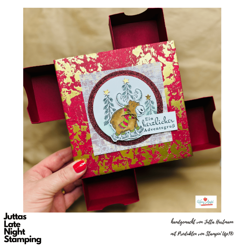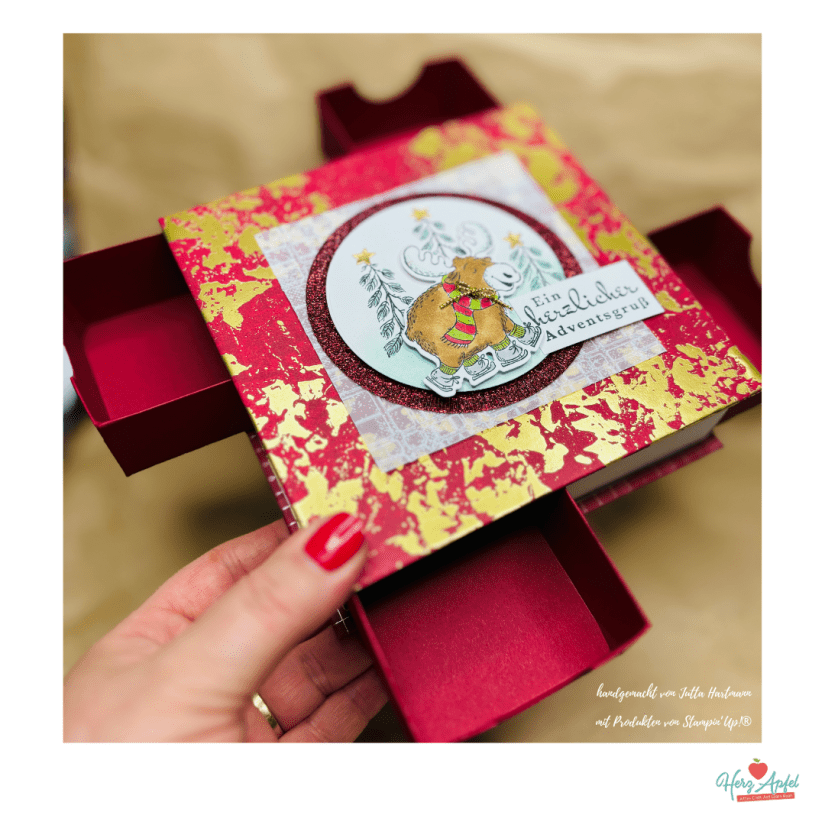 🍎 hier kommen die Bilder zum gestrigen Projekt. Inspiriert hat mich die liebe Jo Blackman. Anfang des Jahres habe ich bereits eine kleinere Verpackung mit diesen 4 Fächern gebastelt. Das Video dazu findest du hier.
