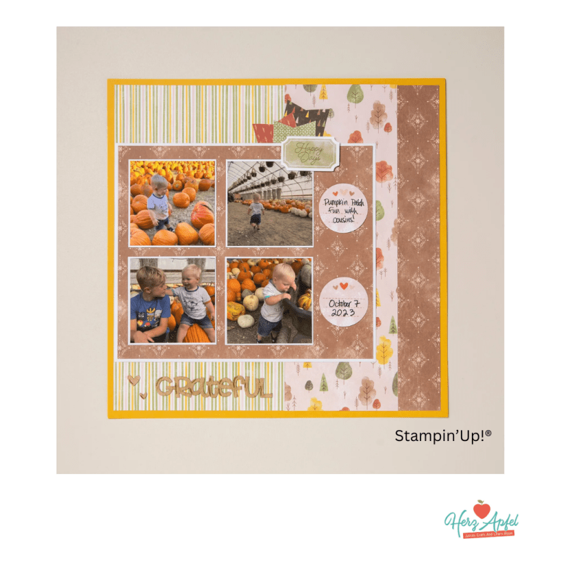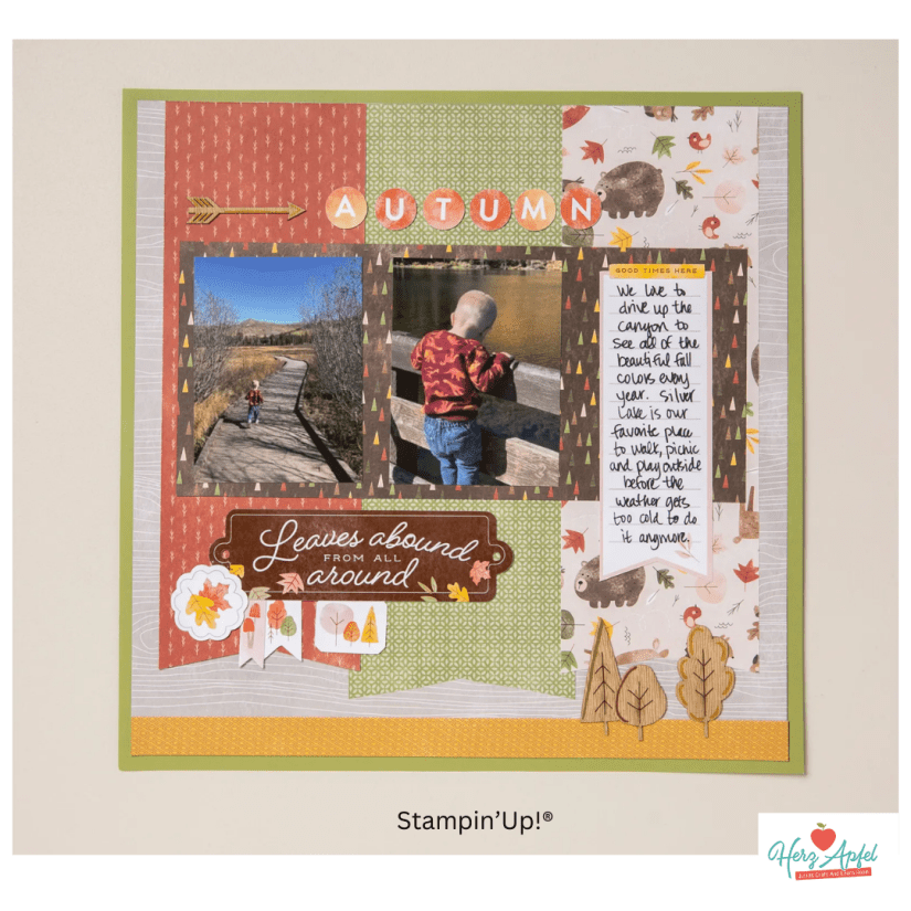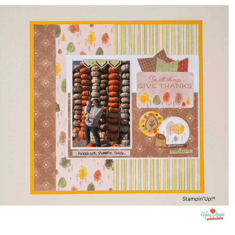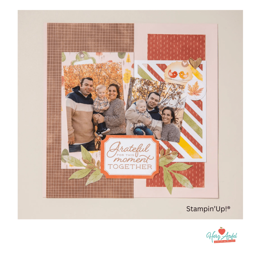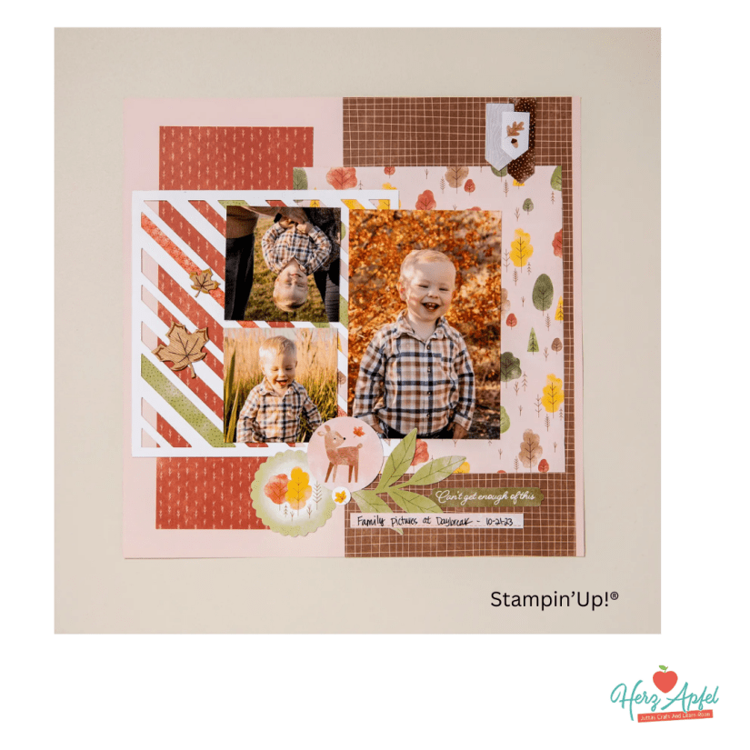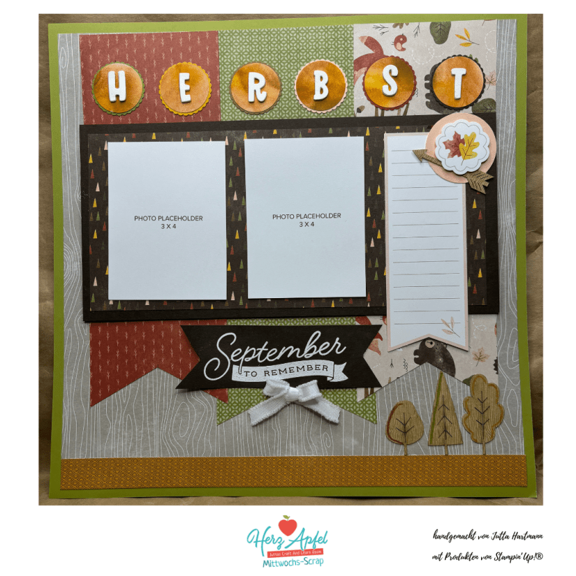 🍎 im heutigen Mittwochs-Scrap ( wenn du auf die blaue Schrift klicks, dann kommst du direkt zum Video Live Video ) habe ich dieses wunderschöne Scrapbooking Layout nachgebastelt mit meinem Inspirationen und Ideen.