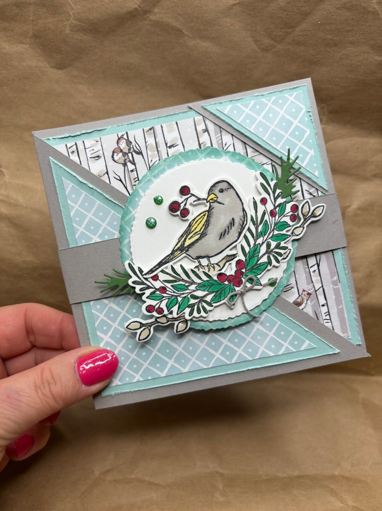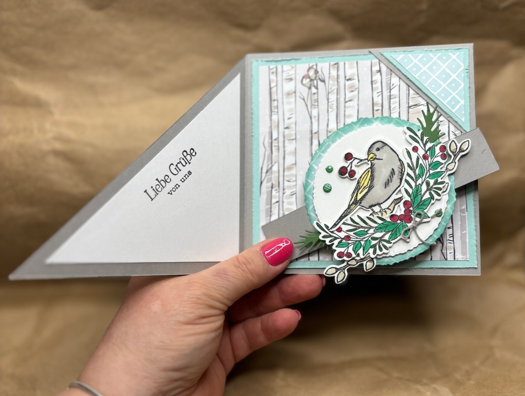 🎄Benutzt habe ich die Produktreihenkollektion Winterliche Wipfel und ich bin nach wie vor in diese süßen Vögelchen verliebt. Auch die Farbkombination Granitgrau und Aquamarin finde ich sehr gelungen!