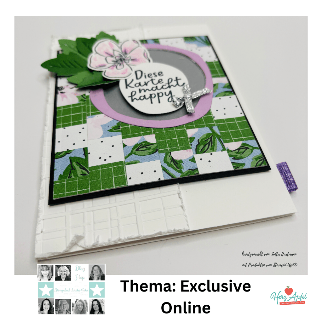 Ich habe mir zum Thema „Exclusive Online“ das Designerpapier Gartenblumen ausgesucht. Zudem habe ich das dazugehörige Produktpaket „Blumiges Dankeschön“ ausgewählt.