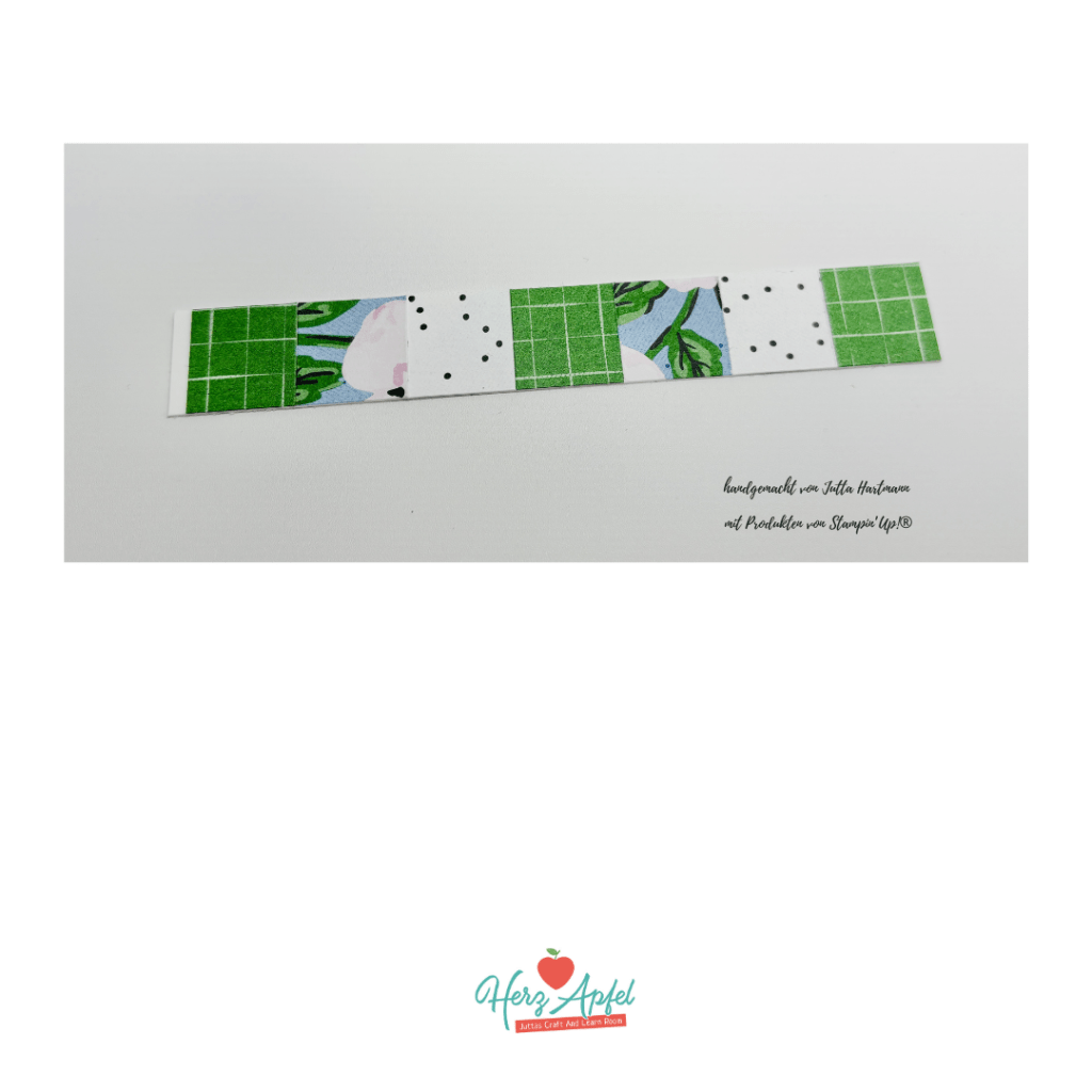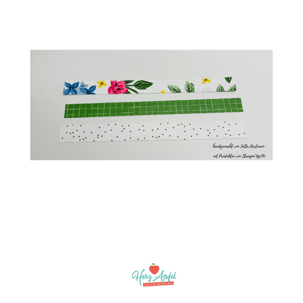 Dann habe ich die Streifen unter einander auf einen Farbkarton in Grundweiss geklebt.