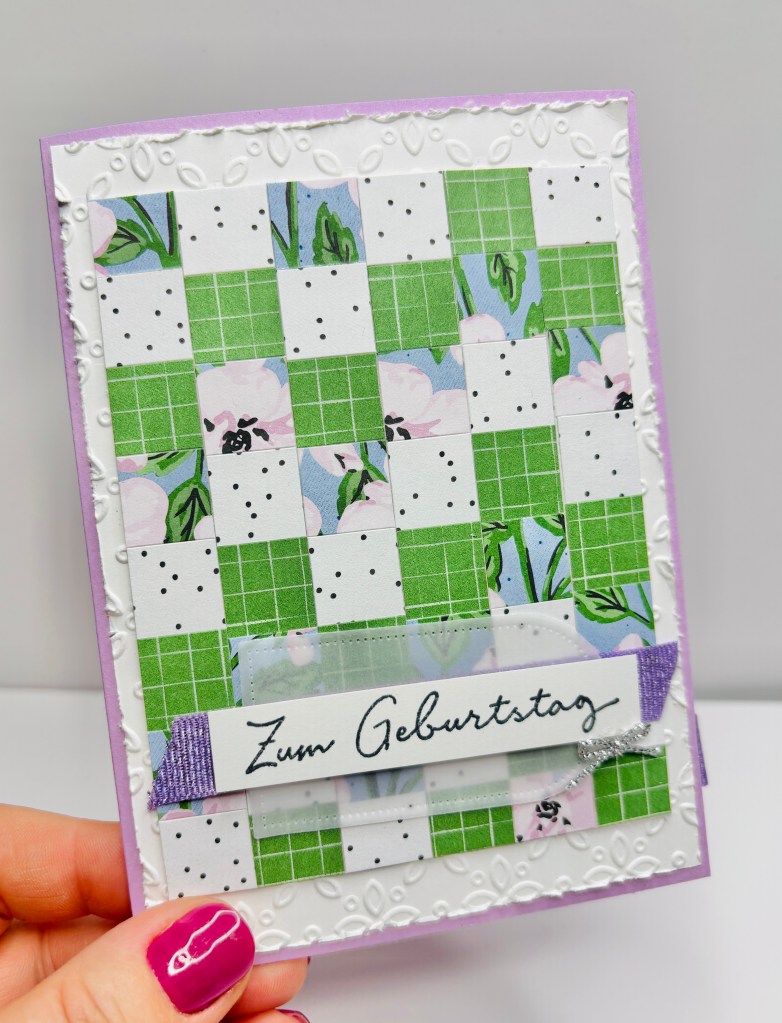 Die Karte ist aus Reste entstanden, die von zwei weiteren Karten übrig geblieben sind. auch das DSP Muster meiner Karte ist durch Restestreifen entstanden, die einfach genial sind. Achtung, wenn man einmal anfängt, dann kann „Vieles“ entstehen und es nimmt kein Ende.