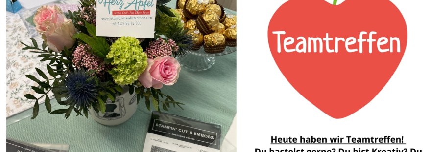 Hallo meine lieben Kreativfreunde, die Tasche ist gepackt und auf zum Papperlapapp! Endlich kann ich meine Basteltasche wieder benutzen! Bei tollem Frühstück haben wir es uns richtig gut gehen lassen und unserem Hobby gewidmet. Ganz tolles Frühstück im Papperlapapp hier in Vorst! Hier habe ich ein paar Eindrücke von unserem Morgen für euch! Ich habe… Weiterlesen 🍎Herz-Apfel🍎 Teamtreffen