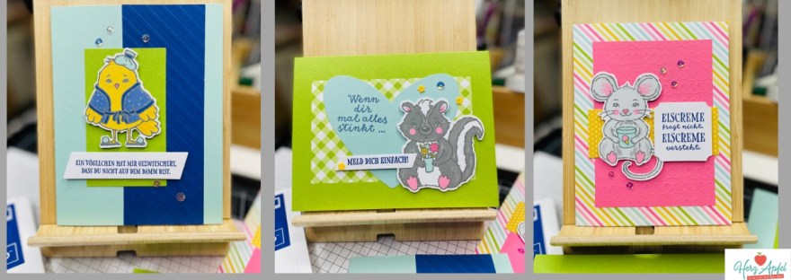 Hallo meine lieben Kreativfreunde! Die Set-Produktlinie hat Zuwachs bekommen! Geht es jemandem gerade nicht so gut, könnt ihr mit dem Kreativset "Echt Dufte" herzige Karten zur Aufmunterung! Die süßen Tiermotive zaubern garantiert jedem ein Lächeln ins Gesicht.Hier kommen ein paar Bilder für euch! Ab sofort bestellbar - auch in meinem Onlineshop! Inhalt des Sets:Klarsichtstempelset Echt… Weiterlesen Neue Kreativstes
