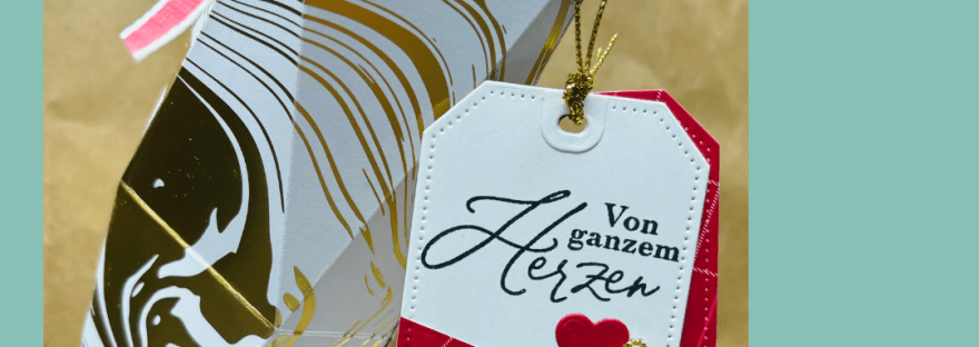 Hallo meine lieben Kreativfreunde,heute habe ich auf Instagram diese schöne Geschenkverpackung nach der Idee von Sam Pootles mit euch gemeinsam gebastelt. Eine wunderschöne Idee mit dem edlen Designer Papier "Goldige Muster".Viele Grüße aus meinem CraftRoomEure Jutta Hier kannst du das Facettenreiche Muster von der Seite sehen. Eine Falz in die richtige Richtung gibt der Verpackung… Weiterlesen Double Faceted Geschenkverpackung